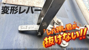 コンテナドアを閉めようとしたら、レバーが固くて閉められない。そんな時に、安全、確実、迅速に閉めることができる専用工具『レバ押し君』を開発しました。