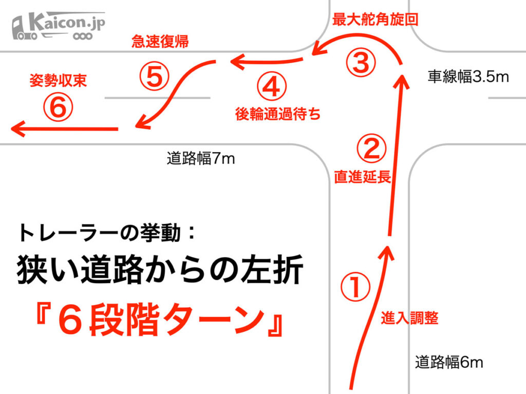 トレーラーの左折は実は『6段階ターン』、ただの円弧ではありません