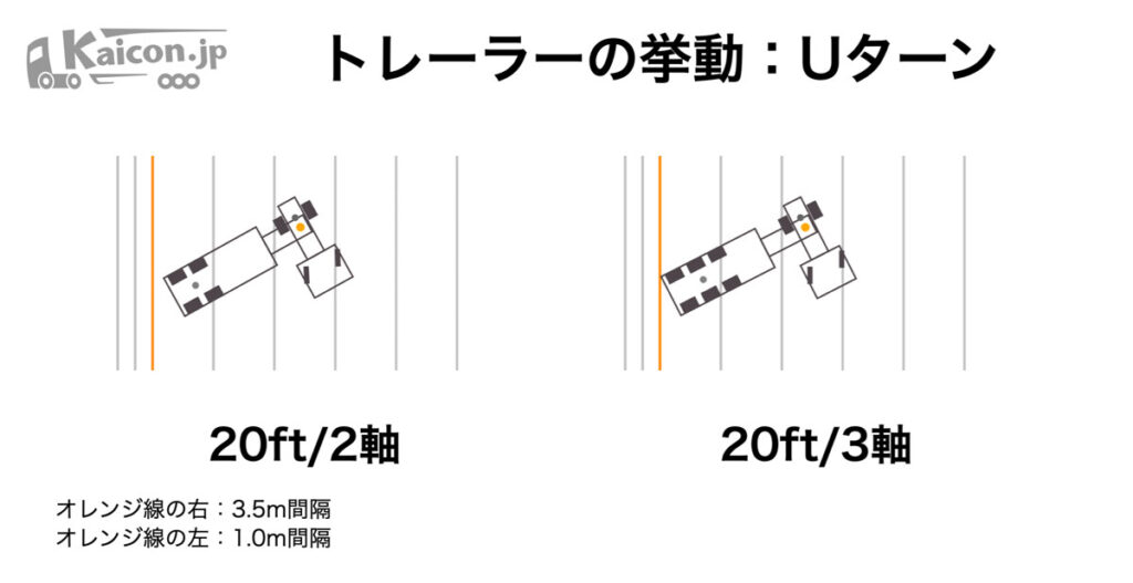 海コントレーラーでUターンする機会は多いと思いますが、どれくらいの道幅があればUターンできるでしょうか?