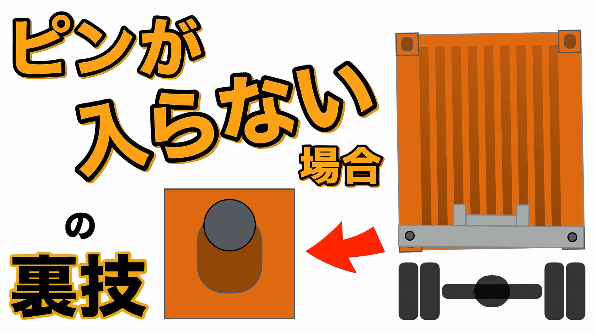 コンテナの穴位置とシャーシのピンの高さが合っていない場合がこの技の対象です。