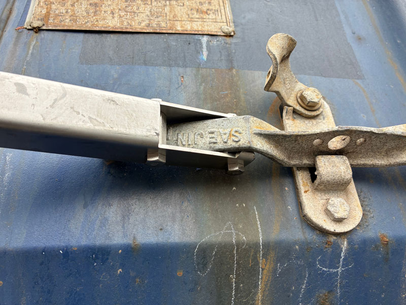 ところが、コンテナドアレバーの変形がひどい場合、閉めることはできても、今度は『レバ押し君』が抜けなくなることがあります。