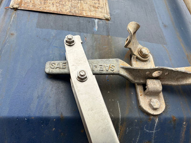 コンテナドアのレバーは想像以上に乱暴に扱われ、ひどく変形している個体も少なくありません。